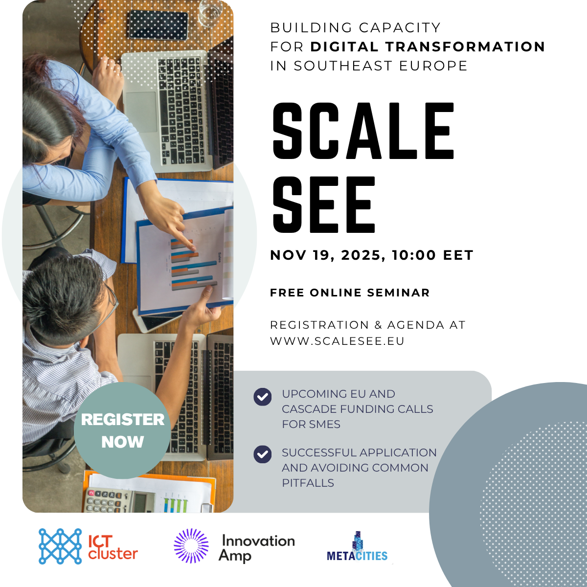 Join us online for insights into EU and cascade funding, digital innovation, and SME opportunities across Southeast Europe.